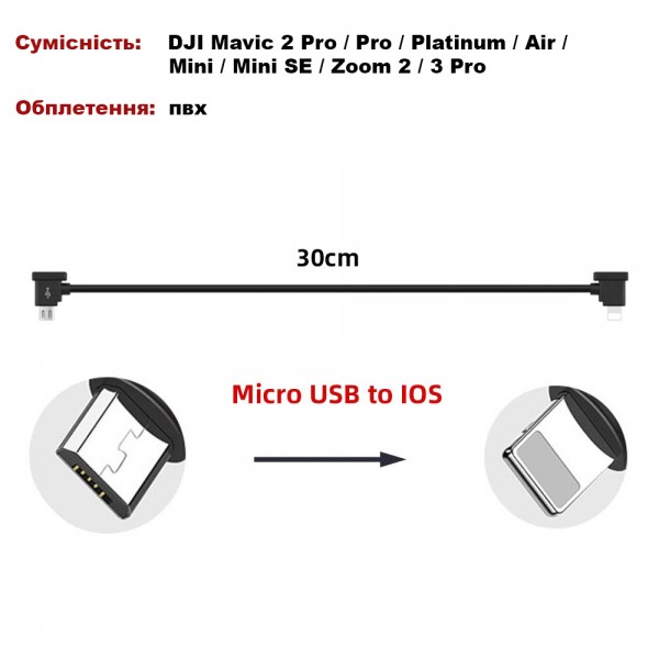 Кабель совместим с пультом квадрокоптера Mavic 2 Pro/Pro / Platinum / Air / Mini/Mini SE / Zoom.