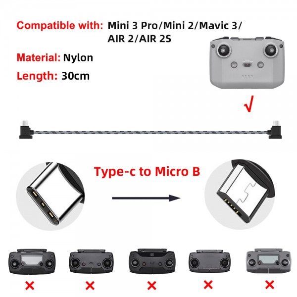 Кабель совместим с пультом квадрокоптера RC-N1 DJI Mavic 3 / Air 2/2S / Mini 2/3 Pro / Pocket Osmo 1/2.