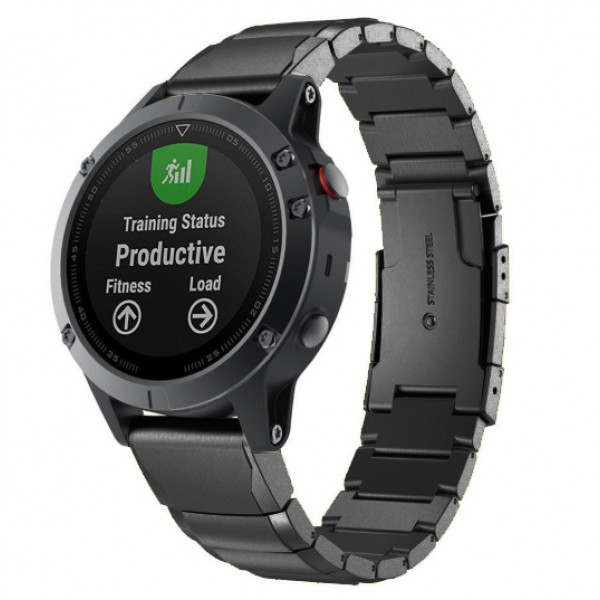 Ремешок отличается сдержанным дизайном, который подходит как спортивному, так и деловому стилю. Застегивается с помощью сложной металлической пряжки, которая обеспечивает надежную фиксацию на запястье и не расстегивается во время активного движения. Длину ремешка можно отрегулировать под индивидуальный обхват, что позволяет добиться максимально комфортной посадки.