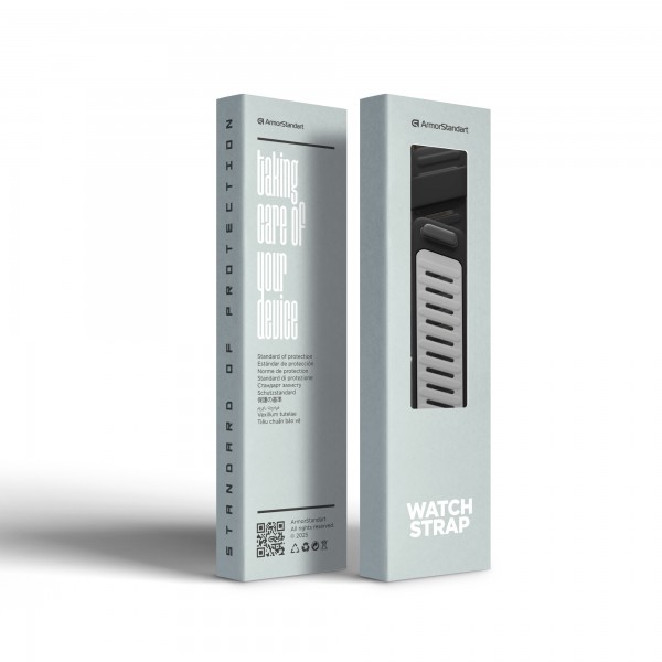 Основа ремешка выполнена из цельного силикона с плотной однородной структурой. Материал сочетает эластичность и стабильность геометрии, благодаря чему ремешок мягко адаптируется к форме запястья, не растягивается и сохраняет форму даже при длительном ношении. Поверхность не впитывает влагу, не накапливает пыль и быстро очищается после контакта с потом или водой.