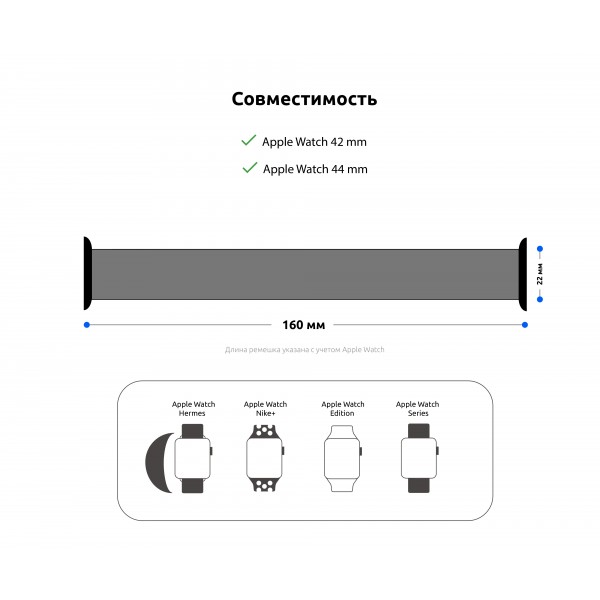 Apple. Уникальная растягивающаяся текстура ремешка позволят с удобством использовать Apple Watch каждый день, а также при необходимости легко снять его с запястья.