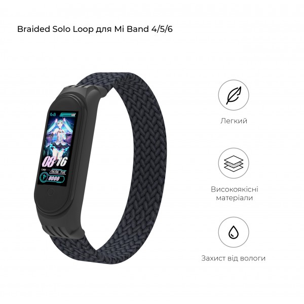 Braided Solo Loop для Xiaomi Mi Band 7/6/5/4 изготовлен из прочного и практичного материала. Его яркая расцветка превратит гаджет в оригинальный аксессуар, который станет отличным дополнением модного образа