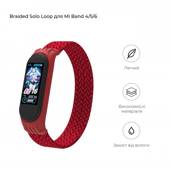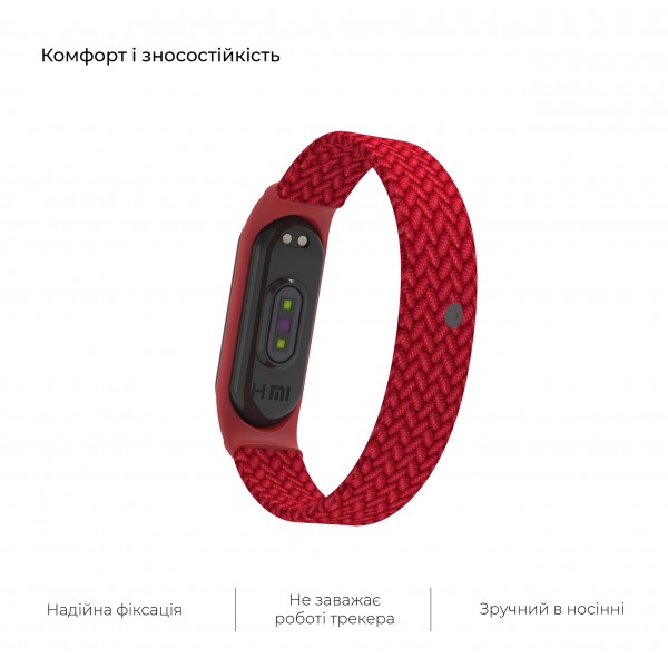 Braided Solo Loop для Xiaomi Mi Band 7/6/5 изготовлен из прочного и практичного материала. Его яркая расцветка превратит гаджет в оригинальный аксессуар, который станет отличным дополнением модного образа