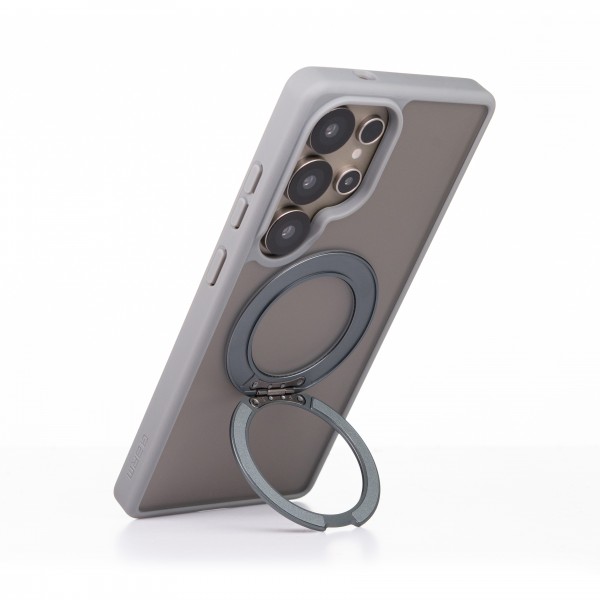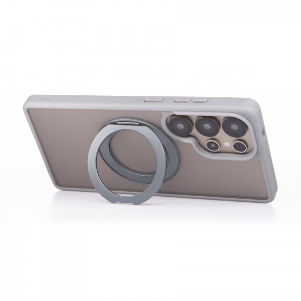В центральной части корпуса расположена поворотная подставка с кольцом, вращающаяся на 360°. Она позволяет использовать смартфон в двух фиксированных положениях: под углом 35° для работы с экраном и под углом 60° для просмотра видео или видеозвонков. Поворотный кронштейн имеет тонкий профиль и не создаёт дополнительных выступов.