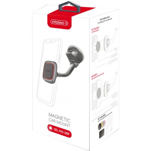 Компактний універсальний автотримач Intaleo CM02GP з вбудованим магнітом, який зручно й безпечно кріпиться на чолове скло.