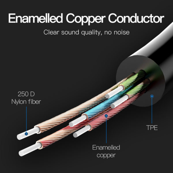 Внешняя часть этого адаптера 3,5 мм изготовлена из разъема корпуса из алюминиевого сплава Hi-Q и кабеля с хлопчатобумажной оплеткой, которые не только избегают запутывания, но и достаточно гибкий.