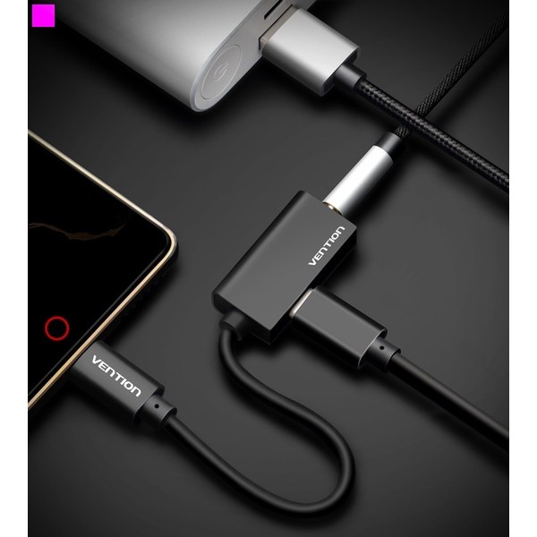Адаптер для наушников Vention Type-C на 3,5 мм, изготовленный из разъема корпуса из алюминиевого сплава Hi-Q и прочной оболочки TPE.