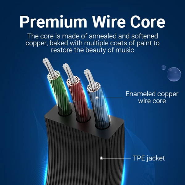 Його литий конектор спеціальної форми й еластичний TPE матеріал забезпечують довголітню експлуатацію, а дріт, виготовлений із безкисневої міді, сприяє передаванню високої якості звуку.