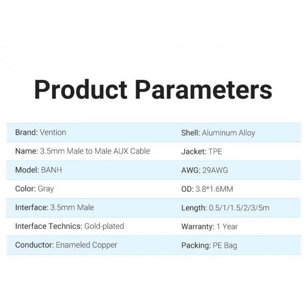 Аудіокабель Vention Audio 3.5 мм Flat — якісний і незамінний аксесуар для власників аудіопристроїв, обладнаних популярним роз’ємом 3.5 мм mini-jack.