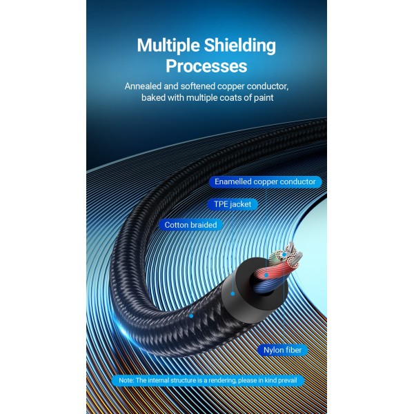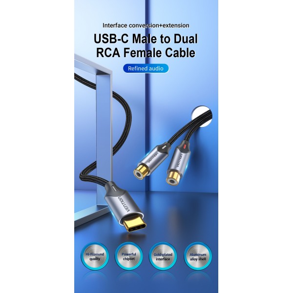 Кабель Audio Vention Type-C-2RCA который может быть использован для передачи аудио сигнала.