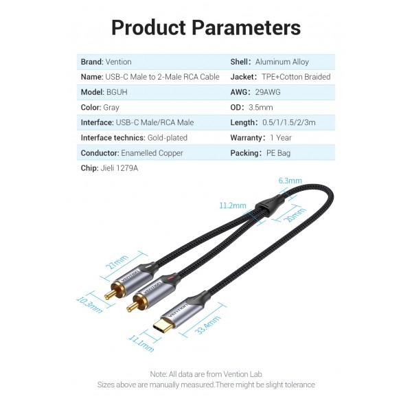 - Тип разъема:Type-C - 2RCA