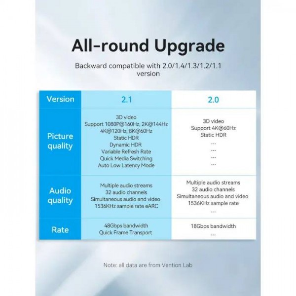 Vention HDMI 2.1 — ідеальний вибір для тих, хто хоче отримати максимум від сучасних технологій.