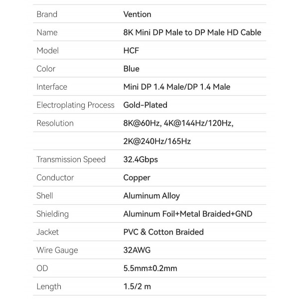 Ідеально підійде для передачі відеоданих у форматі високої роздільної здатності 8K ULTRA HD (7680х4320@60Гц) і має пропускну здатність до 32.4 Гбіт/сек, а також підтримку більш ніж 32 каналів аудіо.