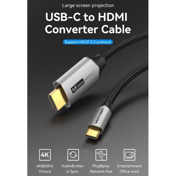 Цей кабель USB-C - HDMI є зручним рішенням для підключення пристрою USB-C безпосередньо до HDMI-монітора, проектора або телевізора.