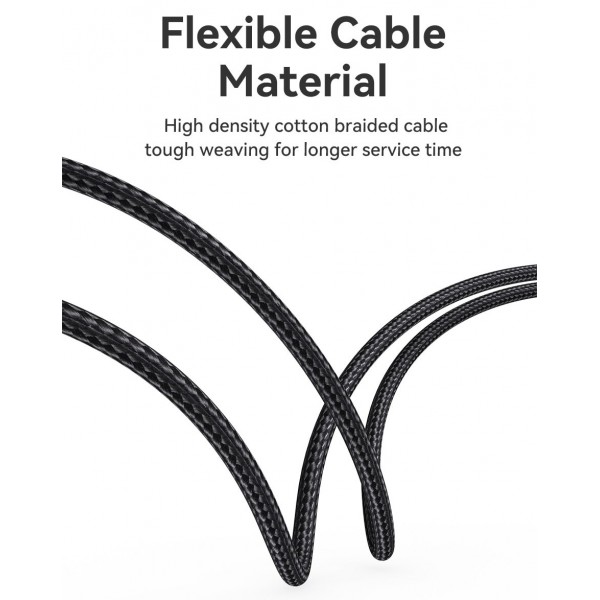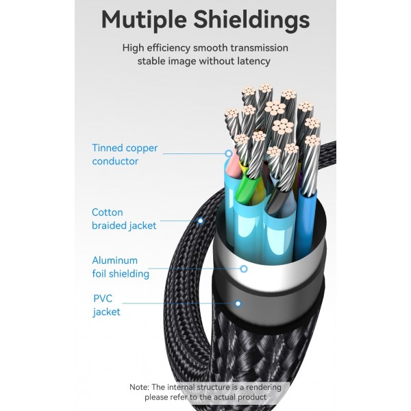 Изготовлен из высококачественного хлопкового оплетка, этот кабель имеет долговечную конструкцию и обеспечивает устойчивость к износу и перегибам. Это идеальный выбор для подключения ноутбука, смартфона или планшета к большому экрану для просмотра видео, игры или работы с документами с высококачественным изображением.