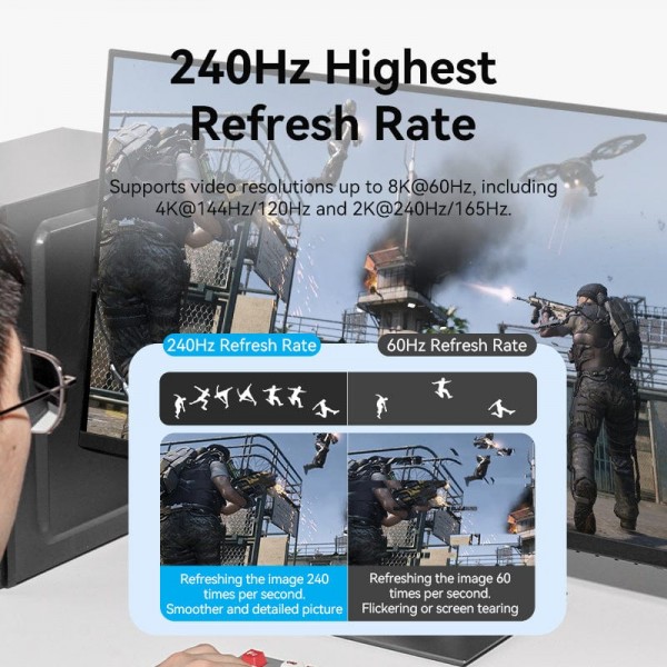 Підтримка: 8K 60Гц / 4K 144Гц / 2K 165Гц / 1080P 240Гц / Dynamic HDR / PLCM / AC-3 / DTS та інші аудіо формати.
