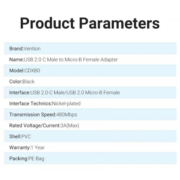 Адаптер Vention USB-C(M) - MicroUSB 2.0(F) OTG.