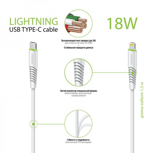 Кабель синхронізації Intaleo USB Type C to Lightning - якісний і незамінний аксесуар для власників мобільних пристроїв компанії Apple.