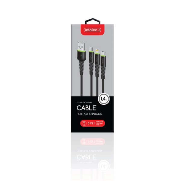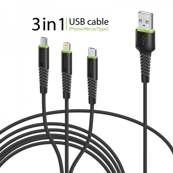 Кабель Intaleo 3 в 1 - якісний і незамінний аксесуар для зарядки мобільних пристроїв, оснащених роз"ємами Micro USB, Type-C і Lightning.