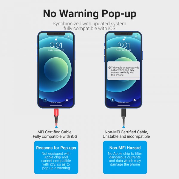Сделано для iPhone / iPad / iPod, полностью совместимо с устройствами iOS, поддерживает официальную гарантийную политику Apple, коды UPC / EAN доступны на веб-сайте Apple, обновленный модуль Apple C89, обеспечивает более безопасную и интеллектуальную среду зарядки.