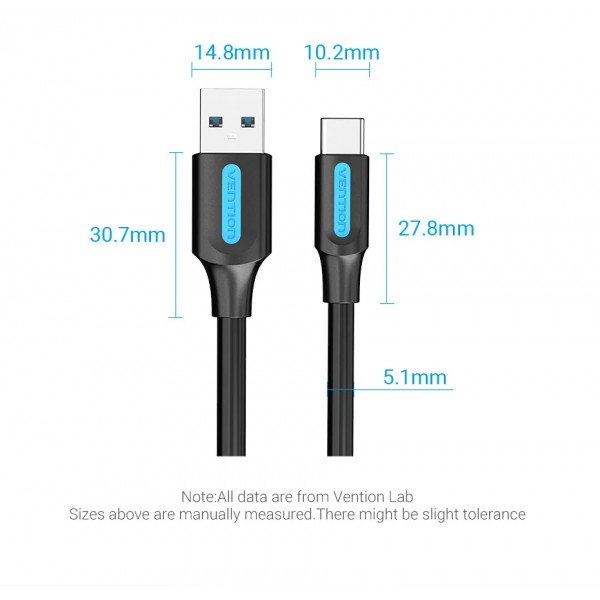 Vention USB-Type-C 3A, 5 Гбит/с, QC 3.0, ПВХ-кабель