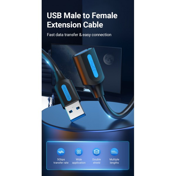 Цей подовжувач USB підтримує високошвидкісну передачу даних USB 3.0 зі швидкістю до 5 Гбіт/с – у 10 разів швидше, ніж USB 2.0 (480 Мбіт/с), що дозволяє передавати фільми або файли у форматі HD за лічені секунди, якщо ваше обладнання з портом USB 3.0.