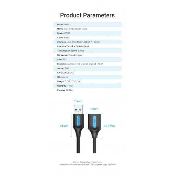 Кабель Vention OTG USB3.0 AF - USB3.0 AM призначений для синхронізації і передачі даних периферійних пристроїв і їх компонентів з роз"ємом USB, в основному використовується, як подовжувач..