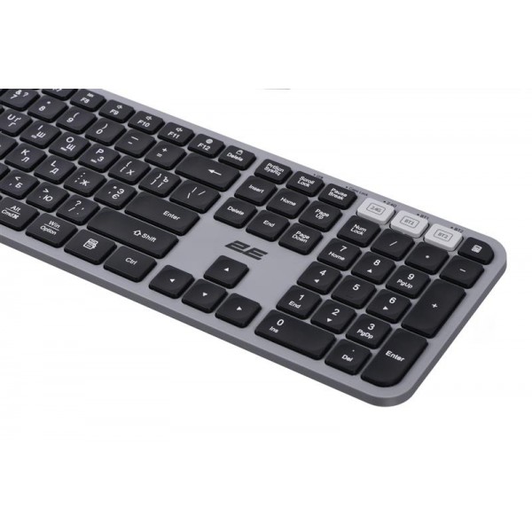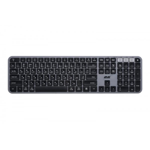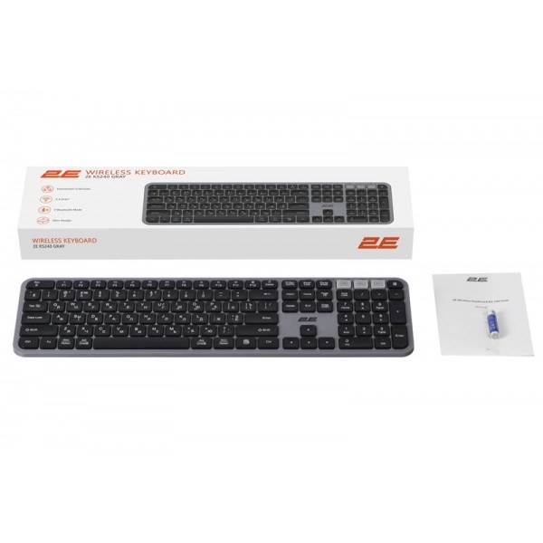 Виконана в мінімалістському стилі, ергономічна повнорозмірна бездротова клавіатура 2E KS240 WL BT є справжнім витвором мистецтва створення сучасної комп’ютерної периферії.
