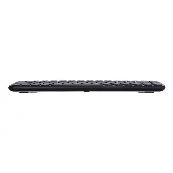 В ергономічному корпусі клавіатури компактно та водночас зручно вміщено 84 округлі клавіші, які вирізняються тихим і чітким ходом, а 12 із них – мультимедійні, що зумовлює можливість легкого керування звуком, відтворенням відео чи іншими функціями через натискання кількох клавіш.