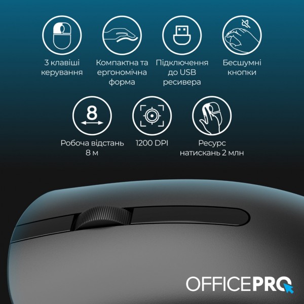 Бездротова миша Officepro M175B є ідеальним рішенням для продуктивної роботи за комп’ютером.