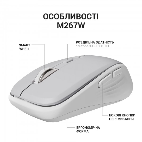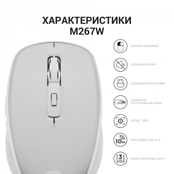 Миша OfficePro M267G Gray розроблена для офісних працівників, які працюють з комп’ютерами в офісному середовищі.