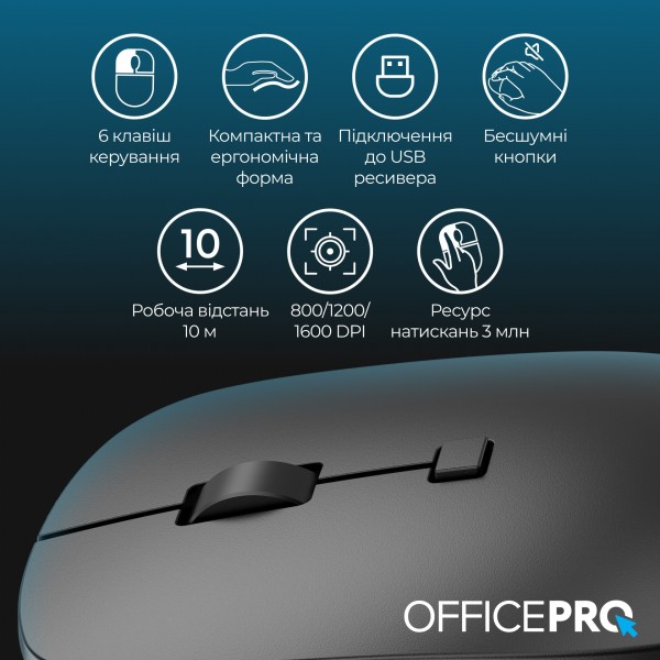 Однією з ключових особливостей Officepro M305B є можливість зміни чутливості DPI, що дозволяє налаштовувати швидкість курсора в діапазоні 800-1200-1600 DPI.