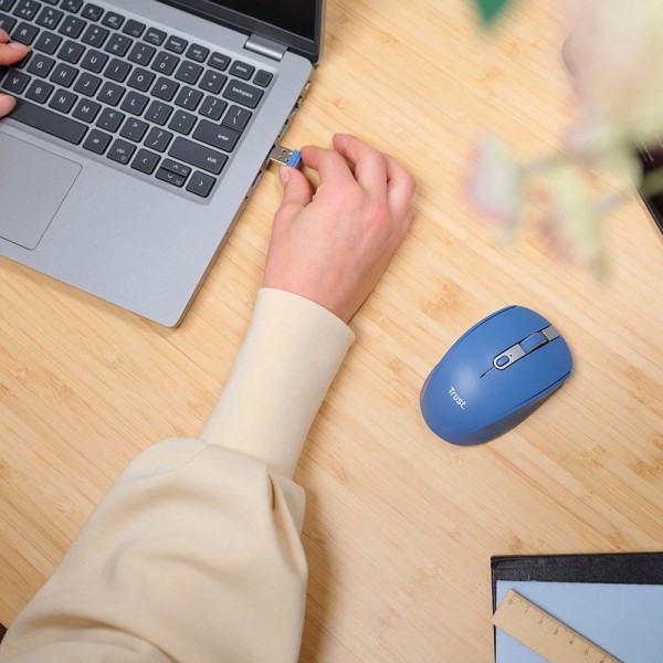 Компактна багатофункціональна бездротова миша Trust Ozaa – це дивовижне поєднання стилю, функціональності та зручності.