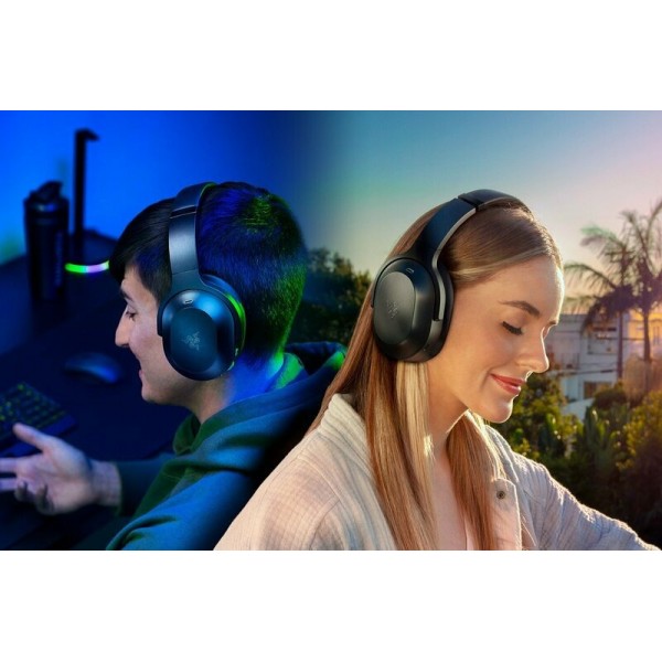 Бездротова мультиплатформна ігрова та мобільна гарнітура Неважливо, де ви знаходитесь – у приміщенні або на відкритому повітрі, – бездротова мультиплатформна ігрова та мобільна гарнітура Razer Barracuda однаково добре працює скрізь. Можливість інтелектуального перемикання гарнітури між високошвидкісним з\'єднанням на частоті 2.4 ГГц та режимом Bluetooth дозволить вам насолоджуватися безперервним звучанням навушників та високою якістю голосу, що захоплюється мікрофоном з шумопоглинанням.