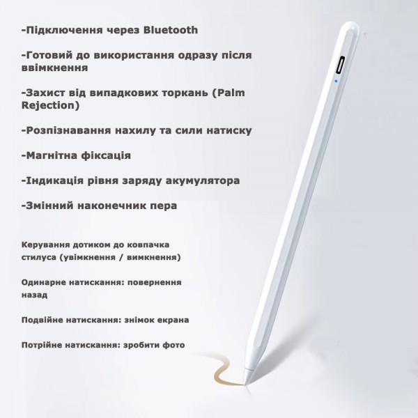 Працює з усіма моделями iPad, що підтримують стилуси Active Touch: