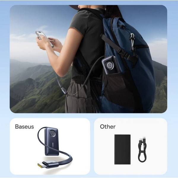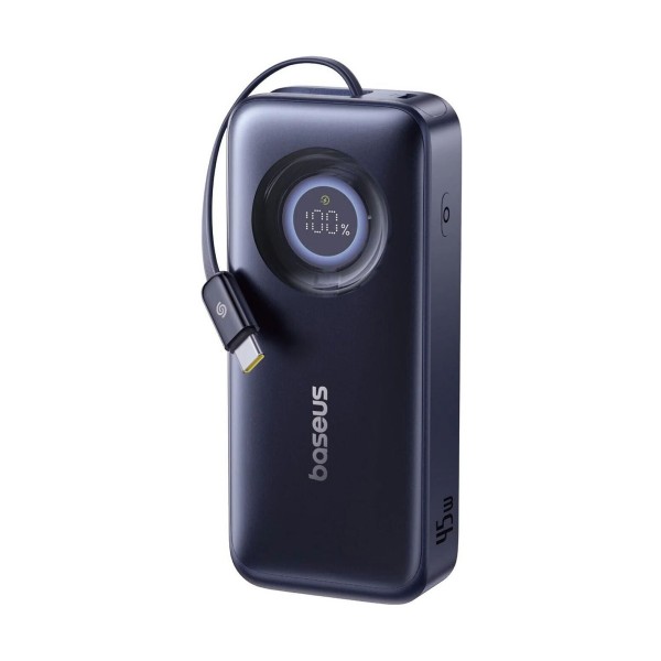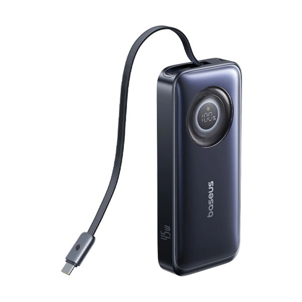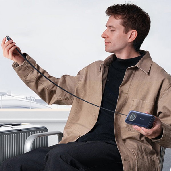Инновационный выдвижной кабельBaseus EnerCore CR11 выделяется среди аналогов благодаря встроенному выдвижному кабелю USB-C, который решает проблему забытых или запутанных проводов. Механизм позволяет легко регулировать длину кабеля, вытягивая его для использования и пряча внутрь корпуса после зарядки. Это делает аксессуар идеальным для путешествий и ежедневных поездок, обеспечивая порядок в сумке и возможность быстро начать зарядку.