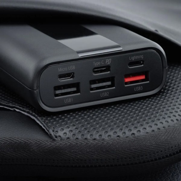 Производительный и практичныйОснащён тремя портами USB-A и одним портом USB-C, он позволяет одновременно заряжать до четырёх устройств. Кроме того, сам пауэрбанк можно зарядить через порты Micro-USB, Lightning и USB-C.