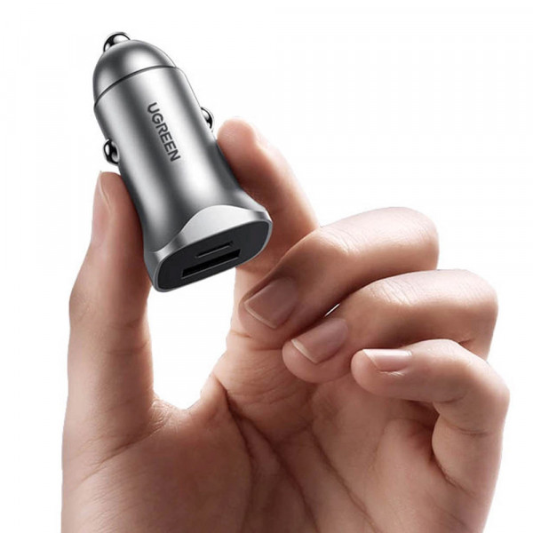 Автозарядка Ugreen CD130 оснащена двома портами – портом USB-A з PD 30 Вт та USB-С, який зарядить підключені пристрої з максимальною потужністю 22,5 Вт. Заряджайте одночасно два пристрої - вбудовані контролери заряду автоматично визначать оптимальний струм для кожного підключеного пристрою.