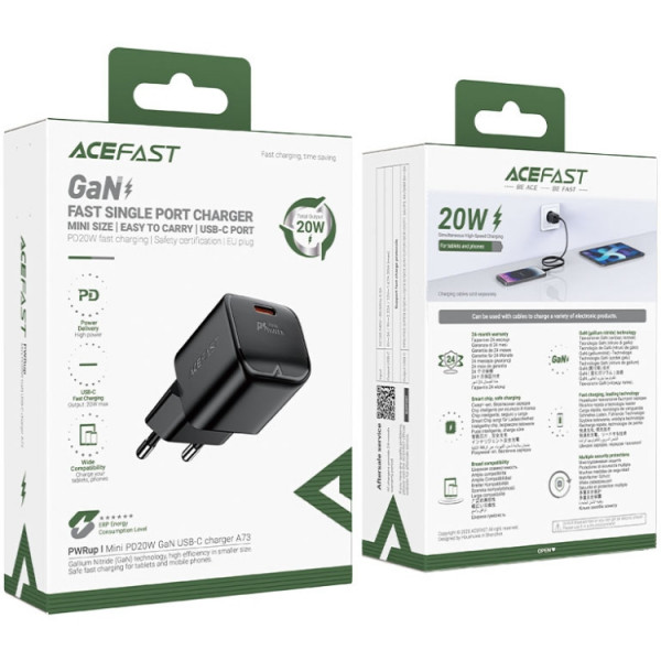 Зарядний пристрій Acefast A73 mini сумісний з розетками зі стандартами електричної напруги 100-240 вольт.
