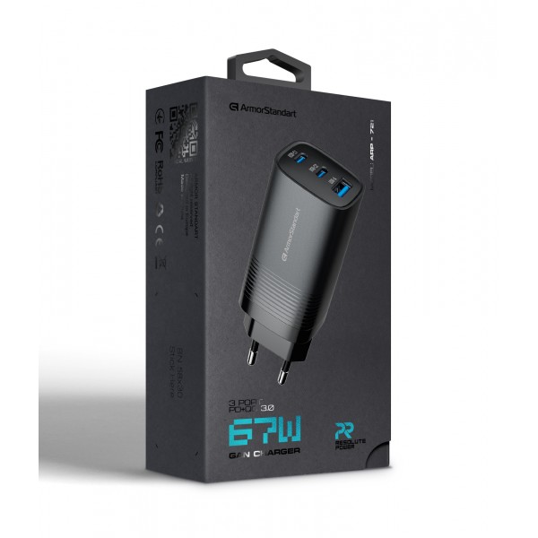 ArmorStandart Resolute Power ARP-721 67W GaN — это сетевой зарядный адаптер для ноутбуков, планшетов, смартфонов и другой совместимой техники. Он подходит для работы, обучения, поездок и ежедневного использования. GaN-технология повышает энергоэффективность, снижает тепловую нагрузку и позволяет реализовать высокую мощность в компактном корпусе.