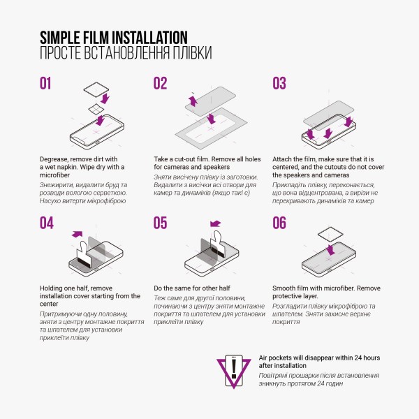 *При установке пленки можно использовать обычную банковскую карту, но важно это делать до снятия транспортировочного слоя пленки, иначе гидрогелевая пленка будет повреждена.