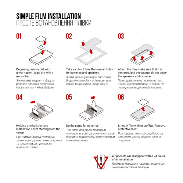 *При установке пленки можно использовать обычную банковскую карту, но важно это делать до снятия транспортировочного слоя пленки, иначе гидрогелевая пленка будет повреждена.