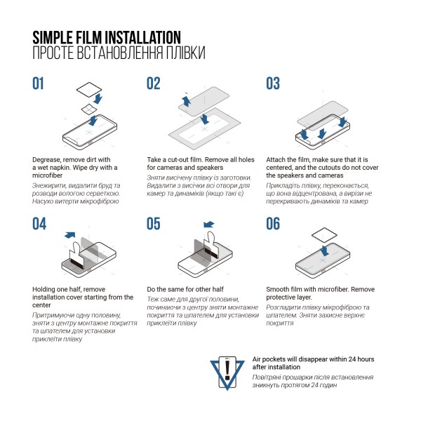 *При установке пленки можно использовать обычную банковскую карту, но важно это делать до снятия транспортировочного слоя пленки, иначе гидрогелевая пленка будет повреждена.