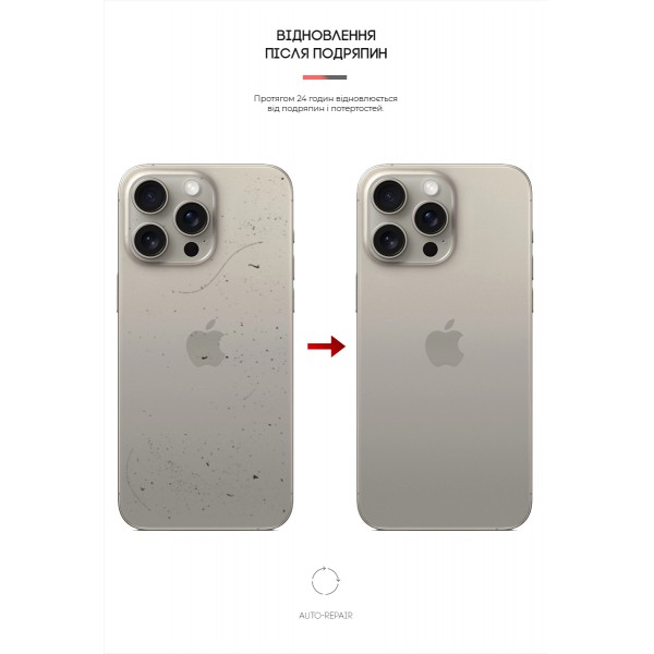 Свойство Auto-Repair - благодаря использованию гидрогеля, пленка восстанавливается от косметических царапин и потертостей в течении 24 часов.