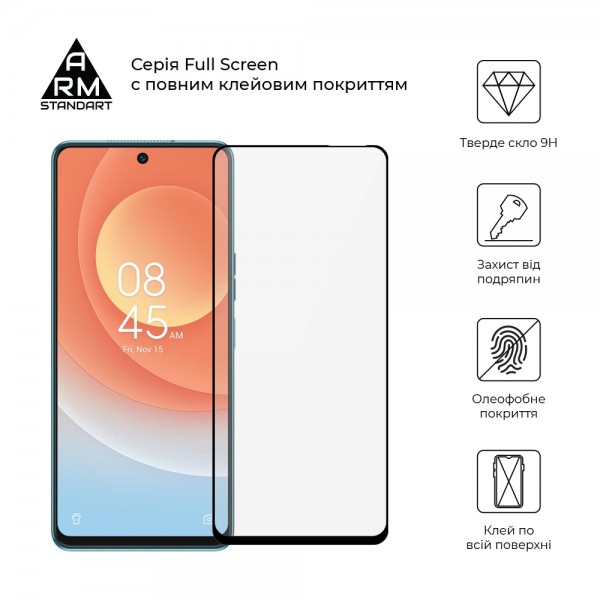 Защитное стекло ArmorStandart Full-Glue закрывает не только дисплей смартфона, но и его рамку, при этом клеится по всей площади дисплея. Оно обладает качественным олеофобным покрытием, которое препятствует появлению отпечатков пальцев.