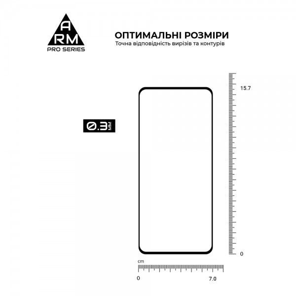 Защитное стекло Armorstandart Pro Series имеет оптимальные габариты и толщину в 0,3 мм. Предусмотрены вырезы под все датчики, камеры и разъемы.