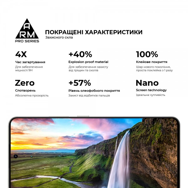 Защитное стекло Armorstandart Pro Series имеет оптимальные габариты и толщину в 0,3 мм. Предусмотрены вырезы под все датчики, камеры и разъемы.