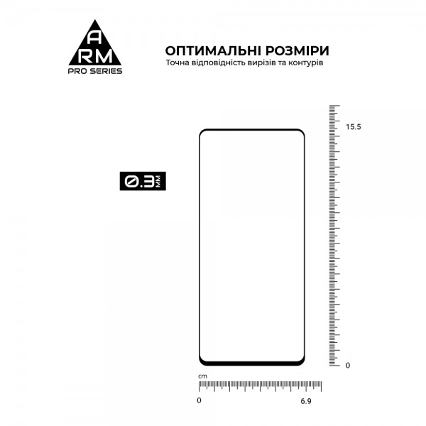 Защитное стекло Armorstandart Pro Series имеет оптимальные габариты и толщину в 0,3 мм. Предусмотрены вырезы под все датчики, камеры и разъемы.