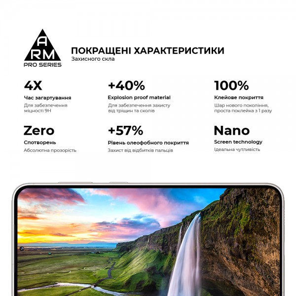 Защитное стекло Armorstandart Pro Series имеет оптимальные габариты и толщину в 0,3 мм. Предусмотрены вырезы под все датчики, камеры и разъемы.