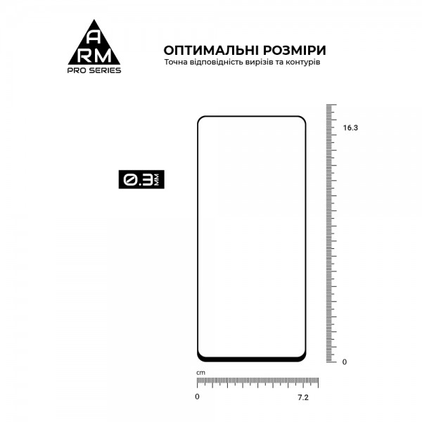 Защитное стекло Armorstandart Pro Series имеет оптимальные габариты и толщину в 0,3 мм. Предусмотрены вырезы под все датчики, камеры и разъемы.